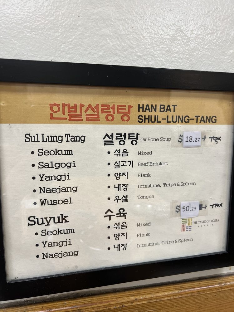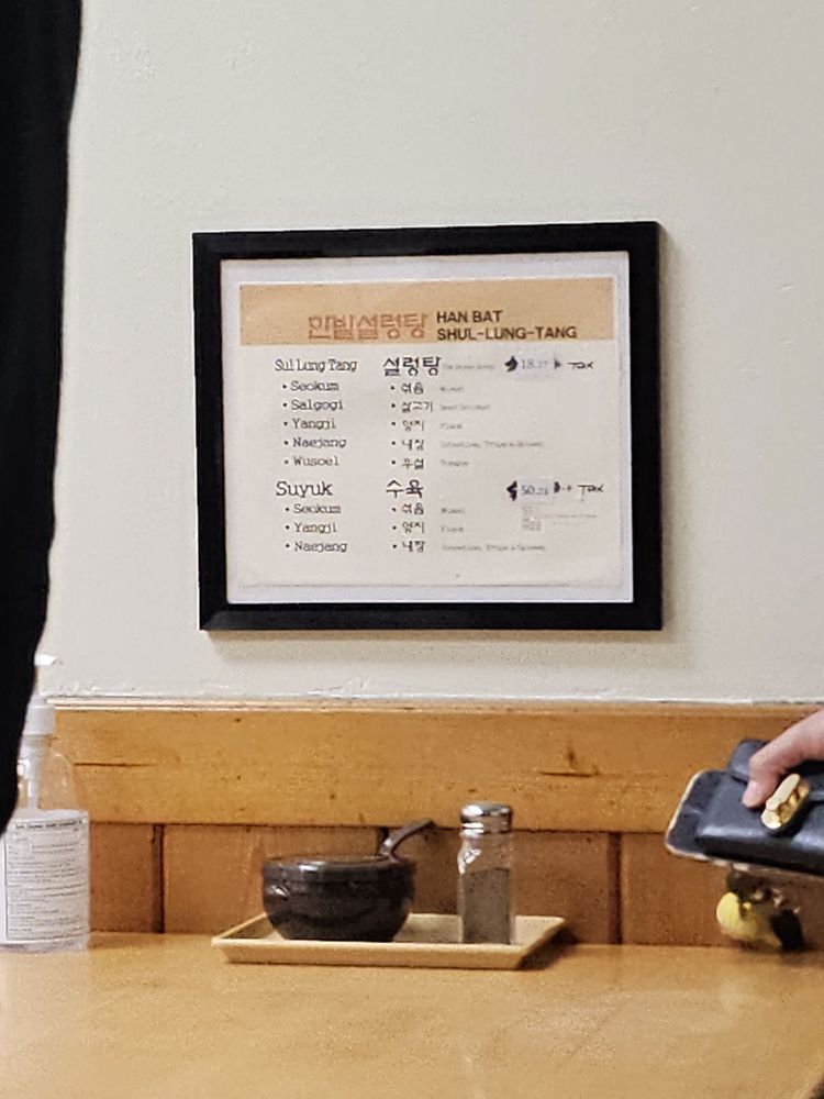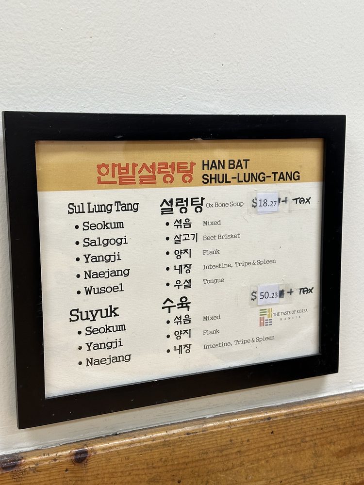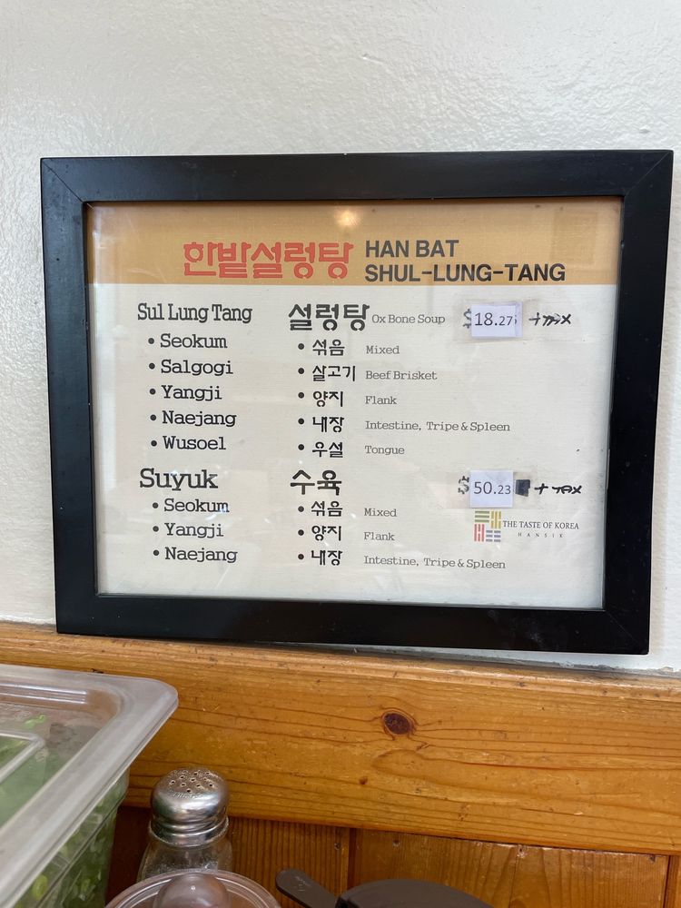 Han Bat Sul Lung Tang Menu (Update 2025)