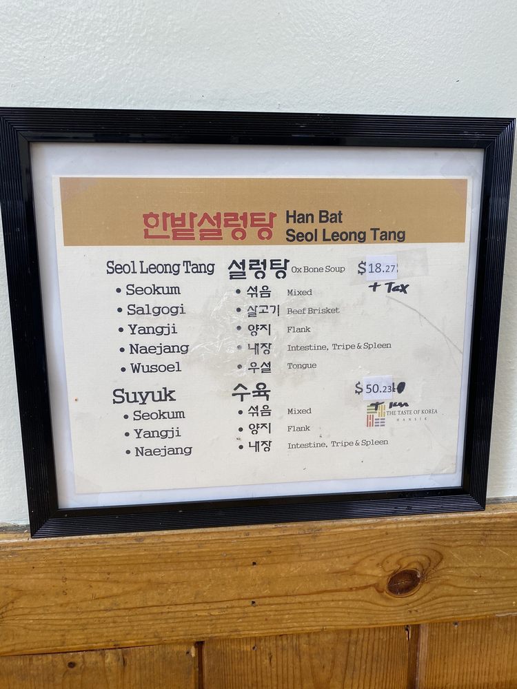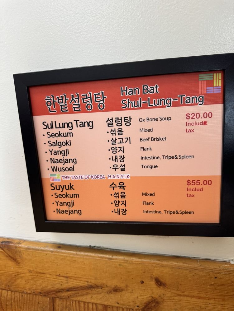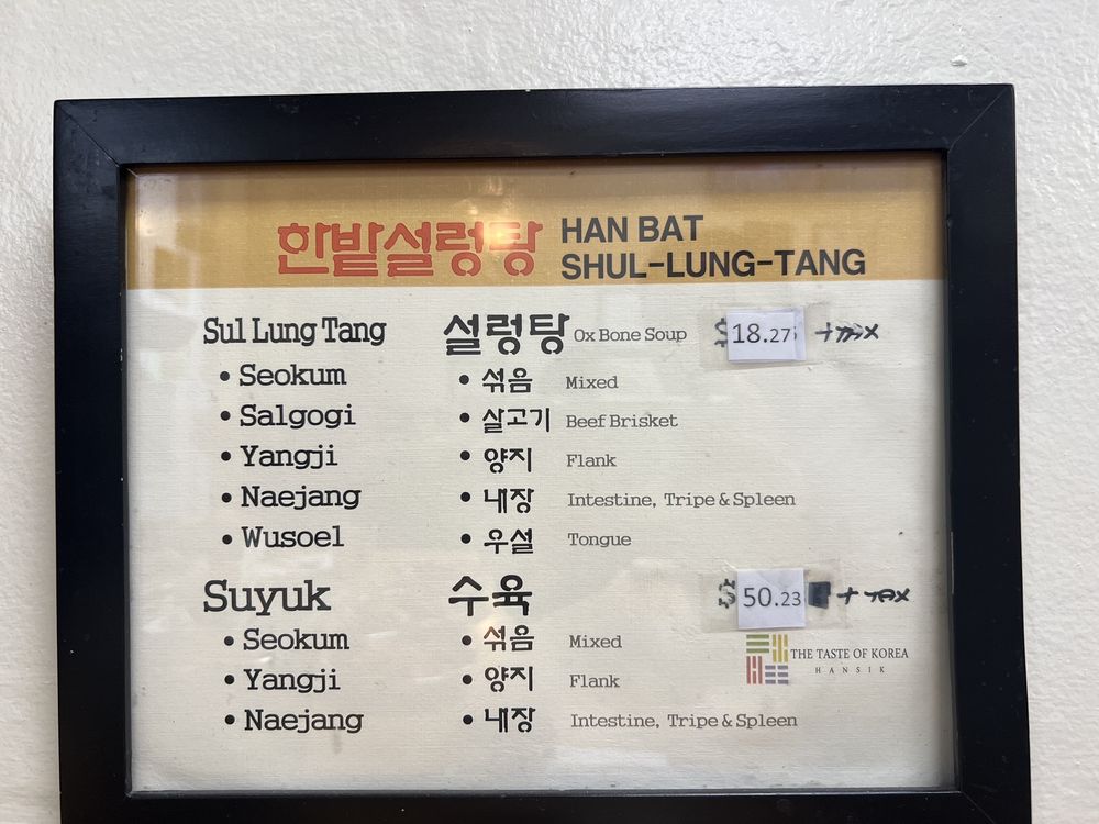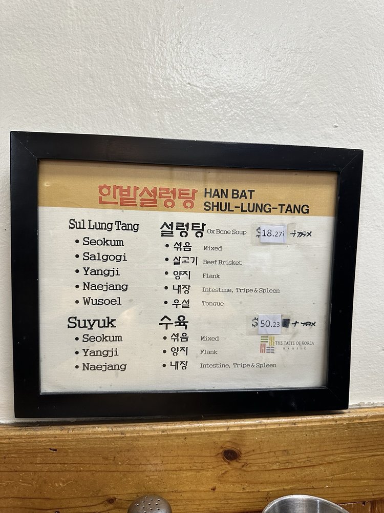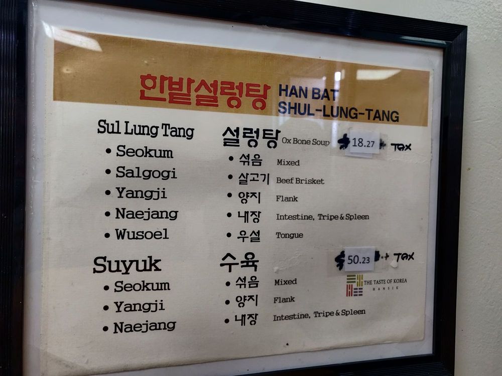 Han Bat Sul Lung Tang Menu (Update 2025)